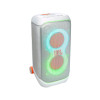 FUTURISTIC LIGHTSHOW UP TO 18 HOURS OF PLAY TIME TELESCOPIC HANDLE AND WIDE; STURDY WHEELS MULTI-SPEAKER CONNECTION BY AURACASTTM JBL PARTYBOX APP MADE IN PART WITH RECYCLED MATERIALS SPLASH PROOF BLUETOOTH® VERSION: 5.4 OUTPUT POWER: 240W RMS