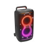 ELECTRIFYING SOUND WITH AI SOUND BOOST FUTURISTIC LIGHTSHOW MULTI-SPEAKER CONNECTION BY AURACAST(TM) UP TO 15 HOURS OF PLAY TIME CONTROL YOUR PARTY FROM THE JBL PARTYBOX APP TELESCOPIC HANDLE AND WIDE STURDY WHEELS IPX4 SPLASH PROOF SEAMLESS HIGH-QUALITY AUDIO CONNECTIVITY EASY CONNECTION TO MIC; GUITAR