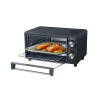 A detachable crumb tray allows easy cleaning of bread crumbs or bits of food that fall through. It comes with 1 baking tray, 1 pizza pan, a baking rack, and tongs for easier handling.