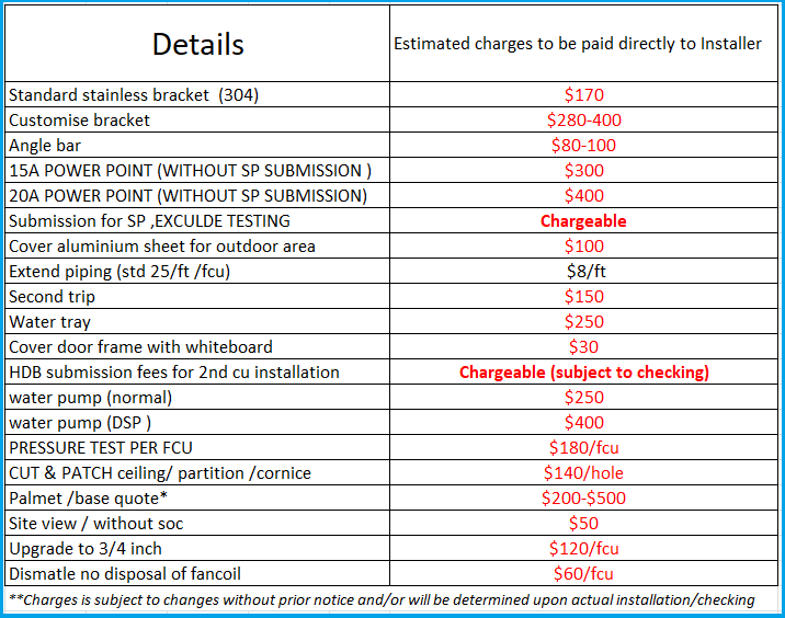 Other Air Con Installation charges