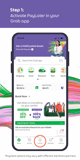 If you’re eligible for PayLater, you’ll be able to activate it in-app, or simply launch your Grab app, tap on Finance, tap on Enjoy Now and Pay Later under Explore GrabPay.