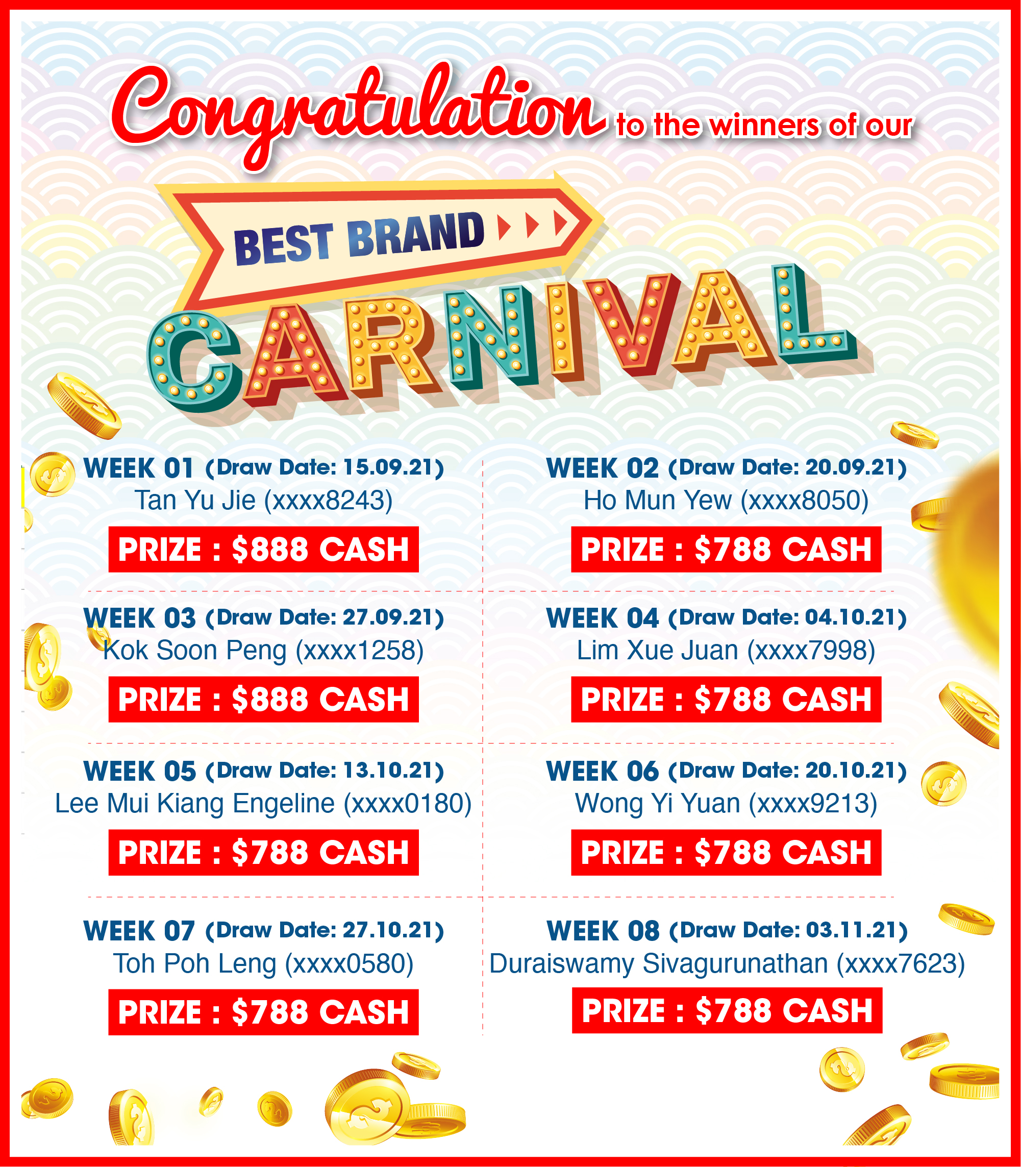 ![]() | Draw Dates: • 15 / 20 / 27 September 2021 • 4 / 13 / 20 / 27 October 2021 • 3 November 2021